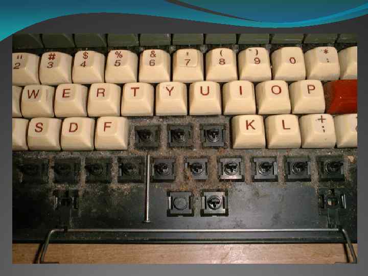 Ключевым моментом превращения печатной машинки в компьютерную клавиатуру стало изобретение в конце 19 века телепечатной машины Бодо. Этот метод заменил телеграф, в котором информация кодировалась двухбитовым методом ( «точка-тире» , а позднее «наличие сигнала – отсутствие сигнала» ). В связи Бодо для кодирования букв алфавита использовался пятибитовый код, при помощи которого сложные электромеханические устройства печатали принимаемый текст на бумагу. Связь была синхронной, и телеграфист должен был нажимать на кнопку только при получении специального звукового сигнала. Позднее передача данных стала асинхронной, и такой способ связи получил название «телетайп» (дословно – «печать на расстоянии» ). В 1920 -х годах телетайп уже широко использовался для передачи финансовой и политической информации. Позднее принимающие устройства стали электронными, и в целях экономии бумаги текст выводился на экран и распечатывался только при необходимости.