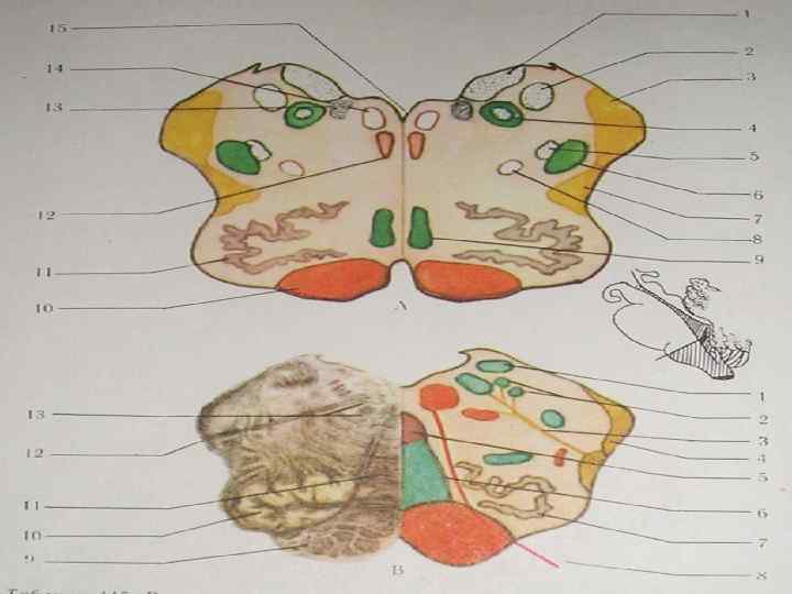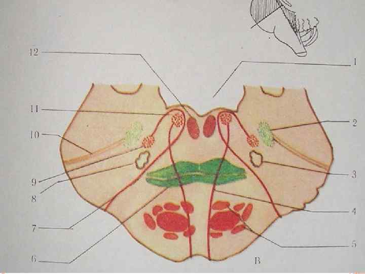 ПАТОМОРФОЛОГИЯ Относится к панэнцефалитам (менингоэнцефалитам), поражаются и серое, и белое вещество– ядра в мосте, продолговатом мозге, в передних рогах верхних шейных сегментов спинного мозга.