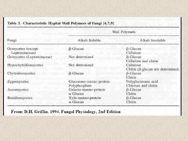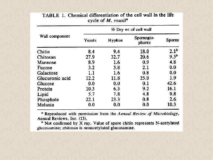 Химический состав клеточных стенок мицелия и дрожжей у Blastomyces dermatitidis β-1, 3 glucan хит ин 14 34 23 34 1/20 37 α-1, 3 глюкана мице лий дрож жи (Kanetsuna and Carbonell 1971)/Nemecek et al. (2006)