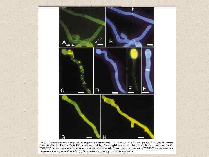 Структурные белки, связанные с клеточной стенкой: • гидрофобины • помимо гидрофобинов важную роль в агрегации гиф и межклеточных контактах играют галектины (особый класс лектинов). Галектины животных вовлечены в процессы роста, дифференциации и апоптоза клеток (Сooper, 2002).