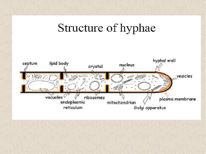 Функции клеточной стенки и клеточных покровов (КС) • • Определяет морфологию клеток грибов. Сложно устроенные многоклеточные плодовые тела высших грибов являются поразительным примером роли клеточной стенки в морфогенезе; Стабилизирует внутреннее осмотическое давление, что очень важно для сохранения формы клетки. Крепкая и эластичная стенка создает противоположное давление, которое останавливает поток воды извне; Защищает против физического стресса и функционирует как защитный покров. Комбинирование механической прочности и высокой эластичности позволяет стенке передавать и перераспределять физический стресс, обеспечивает эффективную защиту от разрушения/повреждения и позволяет гифе проникнуть и расти внутри агрессивного субстрата (Money, 2004; 2008); Клеточная стенка является скелетом/опорой для белков. Большая механическая прочность стенки обеспечивается полисахаридами, но они в тоже время выполняют функцию опоры для гликопротеинов наружного слоя, прикрепленных к ним. Функции гликопротеинов ограничивать проницаемость стенки (в обоих направлениях), создавать микроокружение во внутренних слоях стенки смежных с мембраной, которая находится под контролем гриба. Отрицательно заряженные фосфатные группы на их углеводородной стороне цепи, вероятно, вносят вклад в удержание воды, а белки наружного слоя участвуют в узнавании: субстрата, партнеров при спаривании, субстратов – хозяев для патогенных грибов, последующей адгезии и захвата субстрата.