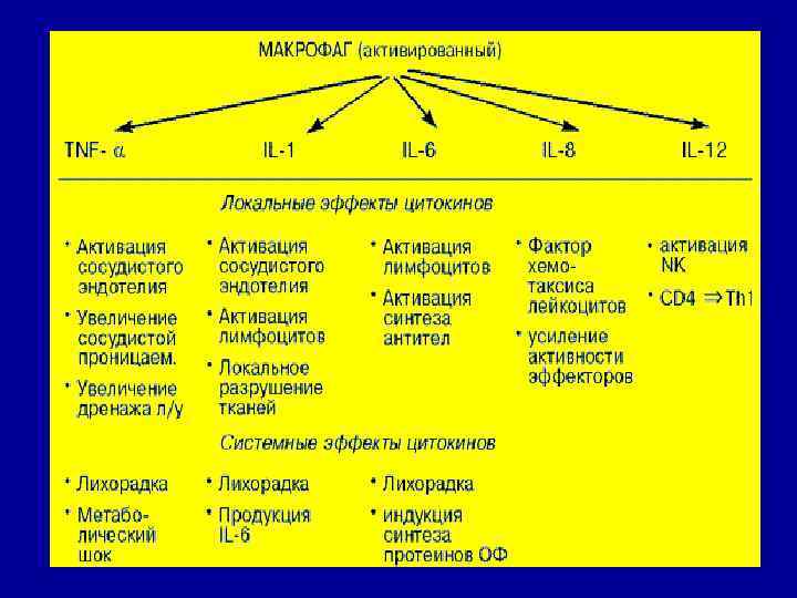 Основные характеристики Фазы иммунного ответа Немедленная (0 -4 часа) Неспецифическая врожденная - Нет иммунологической памяти - Нет специфических Т-клеток Ранняя (4 -96 часов) Неспецифическая и специфическая (индуцированная) - Нет иммунологической памяти - Нет специфических Т-клеток Поздняя (позже 96 часов) Специфическая (индуцированная) - Индуцированная - Есть иммунологическ ая память - Специфические Т-клетки Барьерные функции - Кожа - Эпителий - Локальное воспаление - TNF-a - Ig. A-антитела - Ig. E-антитела на тучных клетках Ответ на экстрацеллюлярные патогены - Фагоцитоз - Альтернативный путь активации комплемента - Активация комплемента - Ig. G-антитела - Ig. M-антитела - Классический путь активации комплемента Ответ на интрацеллюлярные патогены - Макрофаги - Активация макрофагов - IL-1, IL-6, TNF-a, IL-12 - Т-клеточная активация макрофагов с помощью IFN- Ответ на вирусинфицированные клетки - NK-лимфоциты - IFN- , INF-b - NK-активированные клетки - IL-12 - CD 8 T-клетки - IFN-