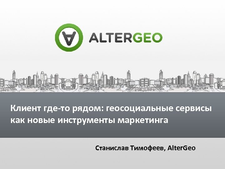 Клиент где-то рядом: геосоциальные сервисы как новые инструменты маркетинга Станислав Тимофеев, Alter. Geo