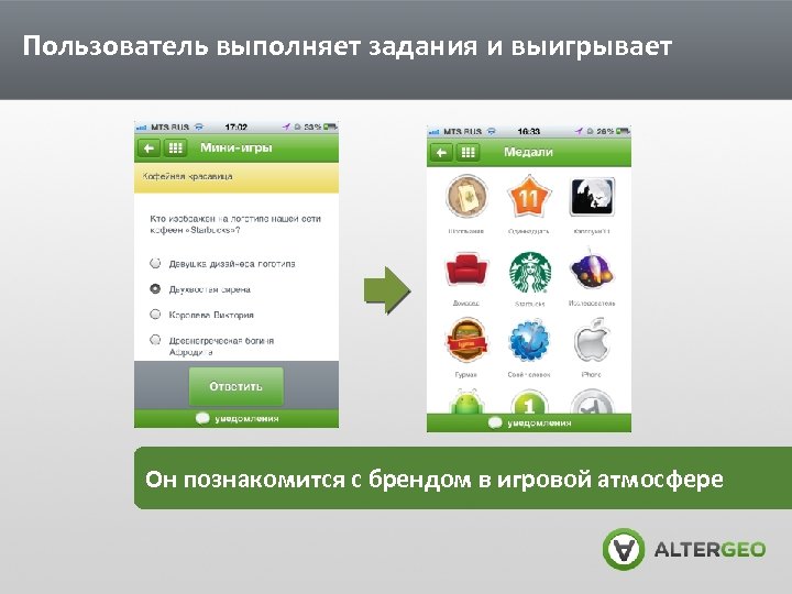 Пользователь выполняет задания и выигрывает Он познакомится с брендом в игровой атмосфере