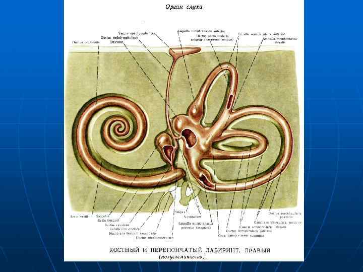 Вместе с внутрилабиринтными жидкостями колеблется и основная мембрана ушного лабиринта. Колебания передаются на нервно-рецепторный аппарат – кортиев орган.