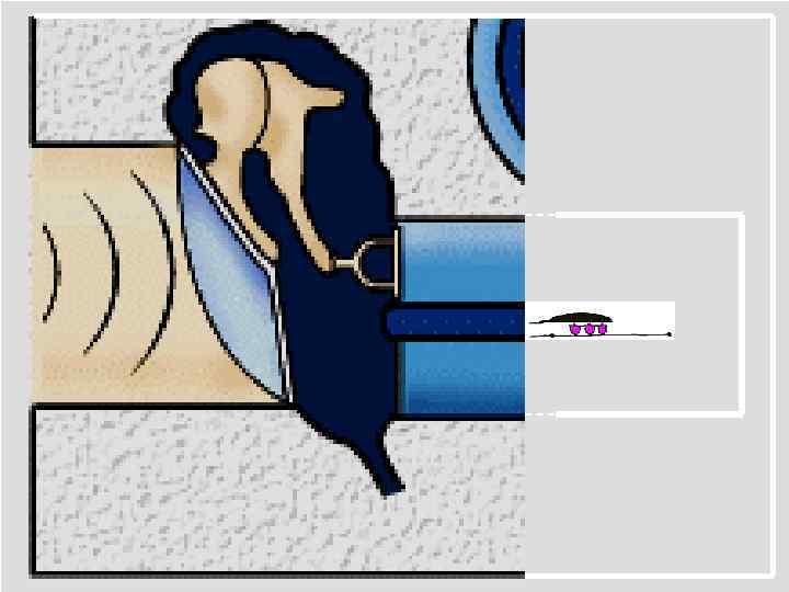Компресионный тип Звук непосредственно поступает с височной кости на костную стенку лабиринта, приводя ее в колебание. В результате чего возникают колебания основной мембраны и кортиева органа с чувствительными волосковыми клетками