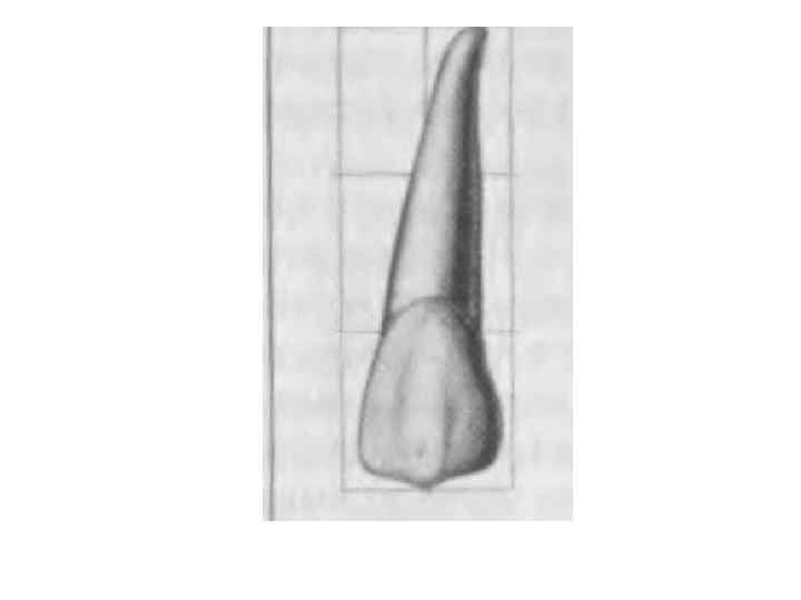 Центральный резец: 31 и 41. • 1 корень • Самый маленький из всех резцов. • Форма сходна с центральным резцом верхней челюсти, но углы коронки одинаковые , а бугор и краевые гребешки не выражены.