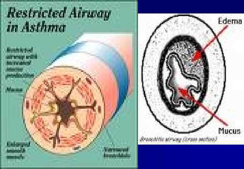Патогенез СБО n Спазм бронхиальной мускулатуры (холино-, адрено влияния (астма) – нейропептиды (субстанция Р, вазоактивный пептид, нейрокинины) – ц. АМФ-ц. ГМФ – простагландины – дилататоры n n n Отек слизистой бронхов (эозинофилы. Нейтрофилы катионные белки, десквамация) Гиперпродукция вязкого секрета Экспираторный коллапс бронхов, эмфизема, перибронхиальный фиброз (ХОБЛ)