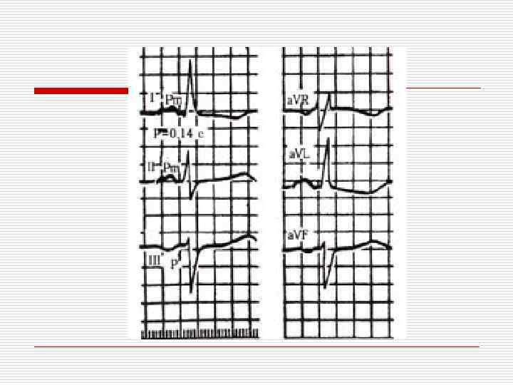 ЭКГ признаки гипертрофии левого предсердия (P. mitrale) o o Раздвоение и увеличение амплитуды зубцов Р (I, II, a. VL, V 5 -6) Увеличение амплитуды и продолжительности второй фазы зубца Р (V 1, 2 или формирование отрицательного РV 1) Увеличение общей длительности зубца Р (> 0, 10 сек. ) Отрицательный или двухфазный зубец РIII