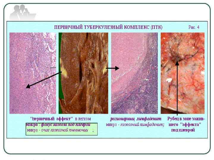 В случаях позднего выявления и неэффективного лечения возможен переход в хронически текущий первичный туберкулез, характеризующийся длительным волнообразным течением и полиморфизмом морфологических изменений в лимфатических узлах (кальцинированные, фиброзные, свежие воспалительные).