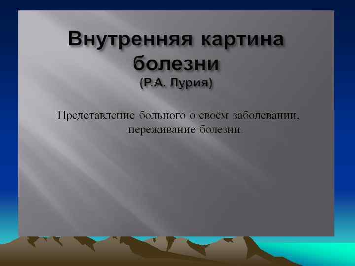 V. Психотерапия Значение термина «психотерапия» (от лат. душа и лечение) многогранно. Принято различать два вида психотерапии. q Медицинская психотерапия — комплексное лечебное воздействие с помощью психических средств на психику больного, а через нее на весь его организм и поведение с целью устранить болезненные симптомы и изменить отношения к себе, своему состоянию и окружающей среде.