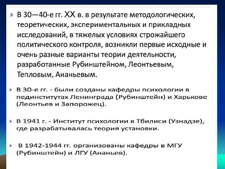 4) проблема развития и распада психики в онтогенезе; 5) проблема нормы и патологии; 6) соотношение между сознанием и неосознаваемыми формами психической деятельности (проблема сознания и бессознательного); 7) исследование строения различных форм психической деятельности (восприятия, памяти, мышления, речи, эмоций, личности и др. ).