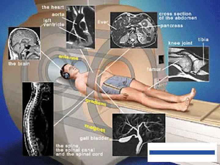 Магнитно-резонансная томография представляет собой новый метод лучевой диагностики, успешно внедряемый в медицинскую практику. Он основан на принципе возникновения ядерномагнитного резонанса. Послойное изображение тканей формируется путем изменения реакции ядер водорода в тканевой жидкости или жировой ткани в ответ на воздействие радиочастотных импульсов стабильного магнитного поля. Метод позволяет получать контрастное изображение мягких тканей и выявлять даже очаги патологически измененной ткани, плотность которой не отличается от плотности нормальной ткани. В настоящее время МР-томография является наиболее информативным методом среди методов лучевой диагностики. Сфера ее применения практически не ограничена.