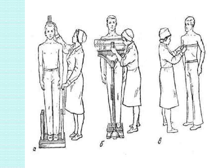 АНТРОПОМЕТРИЯ Антропометрия в клинической практике предполагает оценку длины тела, массы тела и окружности грудной клетки. При антропометрических исследованиях определяют: - длина тела стоя и сидя; - массу тела (состав массы тела); - диаметры – ширину плеч - передне-задний и поперечный; - диаметры грудной клетки; - ширину таза; - окружности – шеи, грудной клетки, плеча, бедра, голени; - длину конечности, длину отдельных сегментов; - силу мышц кисти и спины (становую силу).