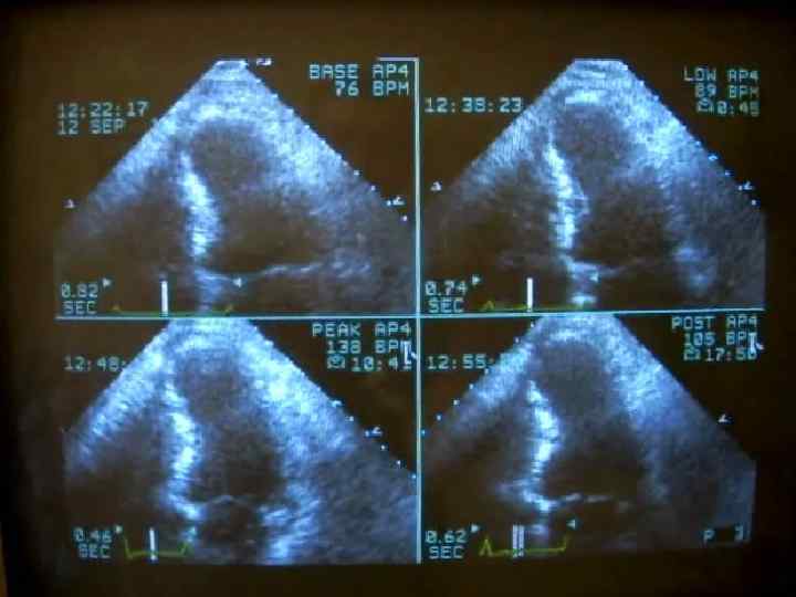 Протокол введения добутамина (кмн Е. А. Немченко) Фаза Этап Время Скорость введения добутамина мкг/кг/мин АД ЧСС 0 125/70 ЭКГ характеристик и 80 Фаза 1 (исход) 0 Фаза 2 (низкие дозы) 1 5 мин 5 140/70 84 без динамики 2 3 мин 10 145/70 91 без динамики Фаза 3 (высокие дозы добутамина ) 3 3 мин 20 150/70 102 без динамики 4 3 мин 30 140/80 122 Ед. ж. экстр. 5 3 мин 40 120/70 140 Ед. ж. экстр