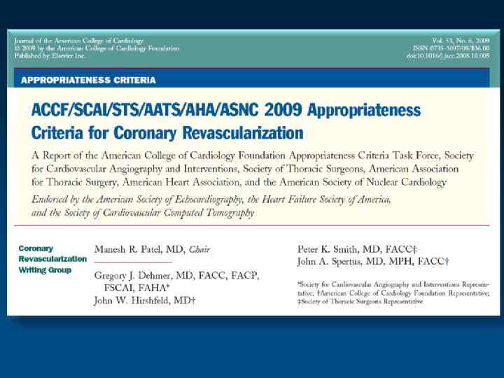 Сравнительная оценка анатомической (АКГ) и физиологической значимости стенозов КА у б-х ХИБС n= 67, стенозы 2 -3 хсосуд. ≥ 50% без ствола ЛКА Сцинтиграфия (SPECT) J Am Coll Cardiol Intv. 2010; 3(3): 307 -314. doi: 10. 1016/j. jcin. 2009. 12. 010 * * С аденозином