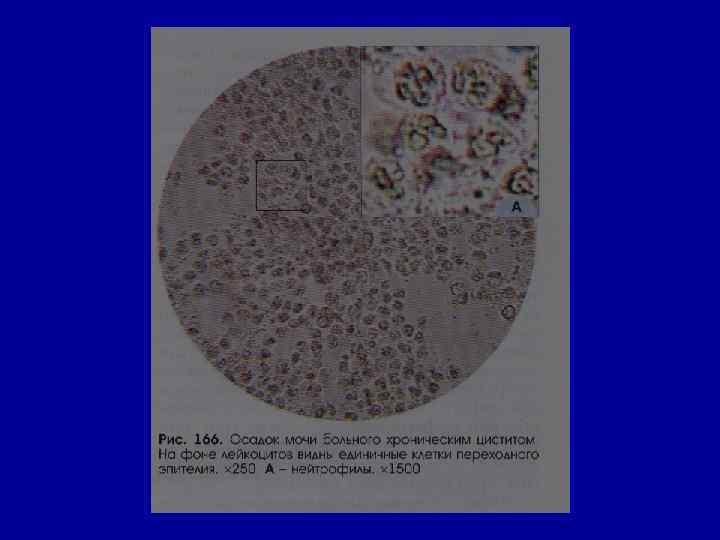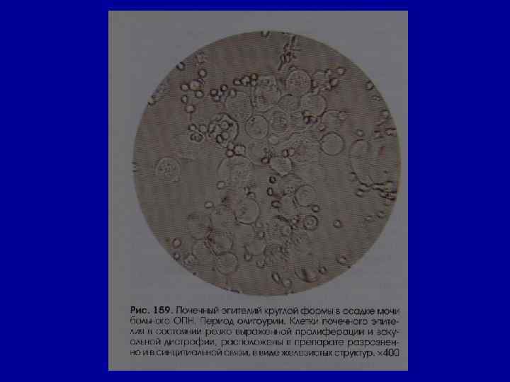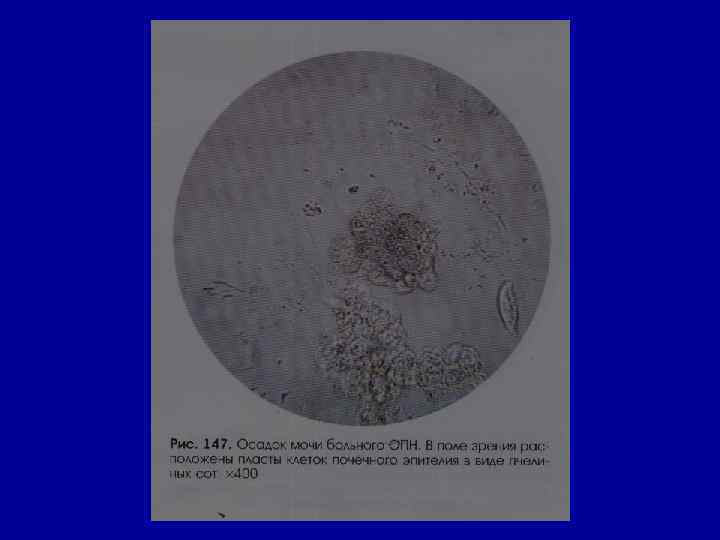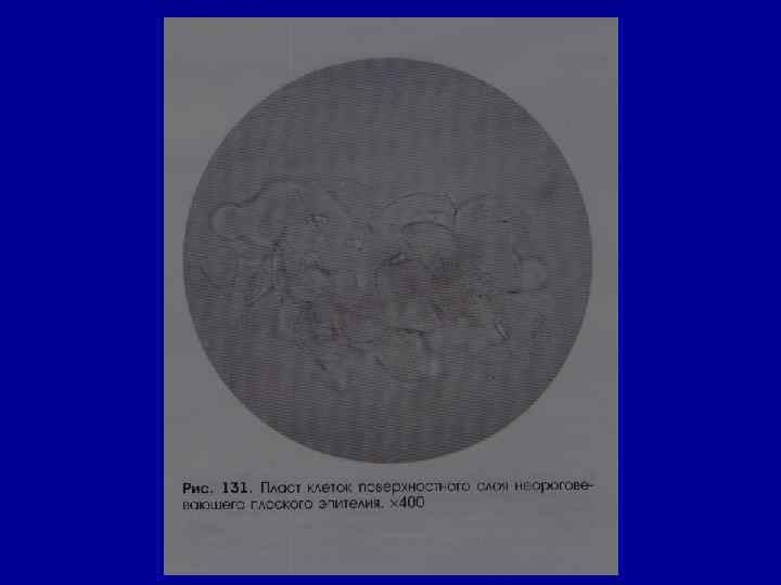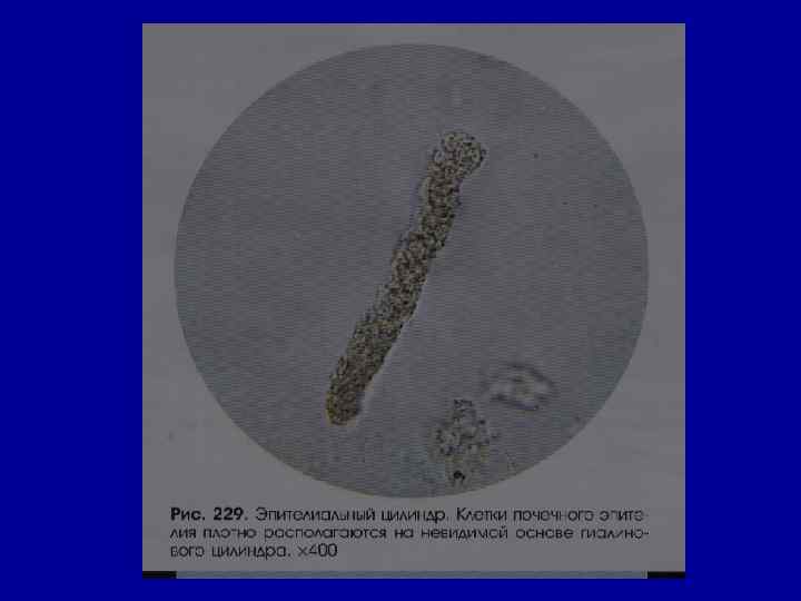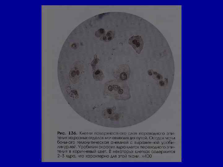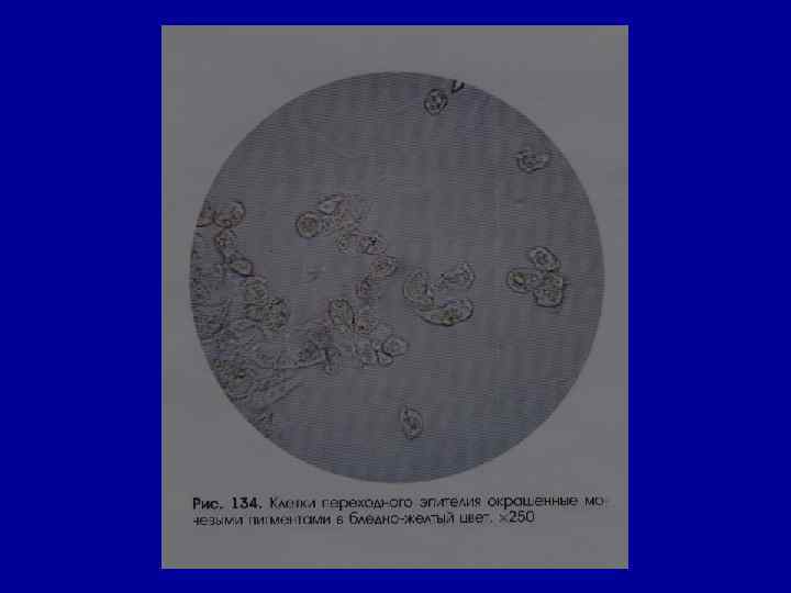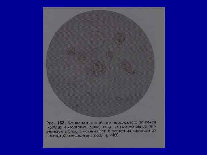 Микроскопическое исследование осадка Эпителий • в норме – единичные в поле зрения клетки плоского (уретра) и переходного эпителия (лоханки, мочеточник, мочевой пузырь). • Почечный эпителий (канальцы) отсутствует