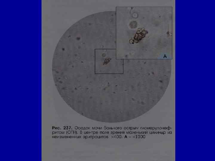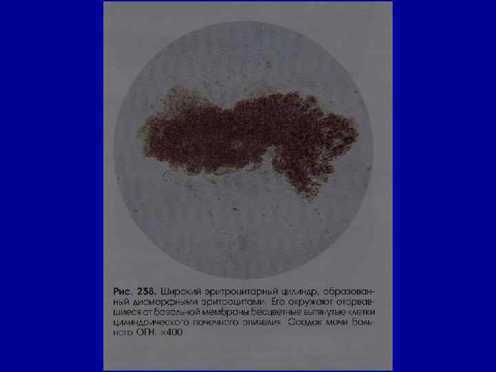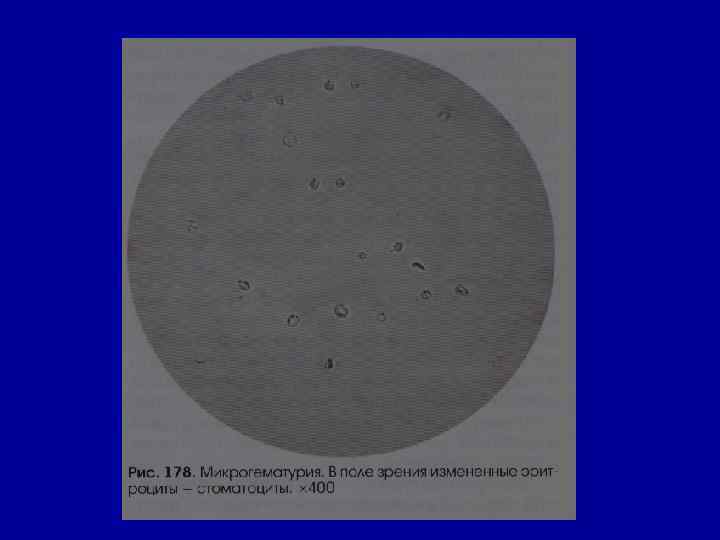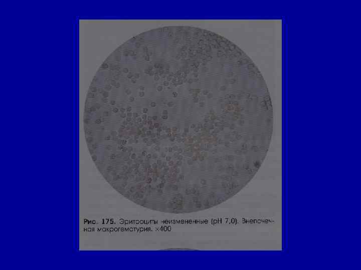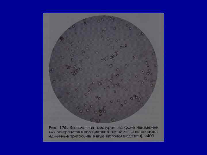 Микроскопическое исследование осадка Эритроциты в норме – отсутствуют или единичные в препарате • причины гематурии: - ОГН - ХГН - пиелит - цистит - ХПН - травма почек, мочевого пузыря - мочекаменная болезнь - папилломы - опухоли - туберкулез почек, мочевыводящих путей - передозировка антикоагулянтов, сульфаниламидов, уротропина •