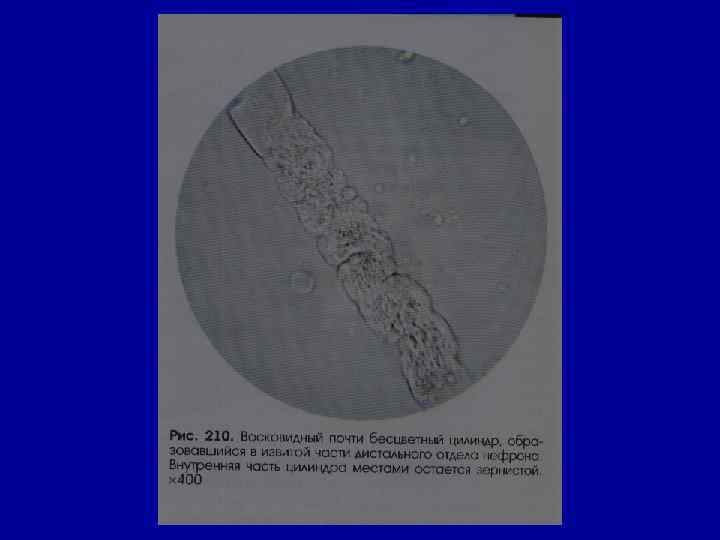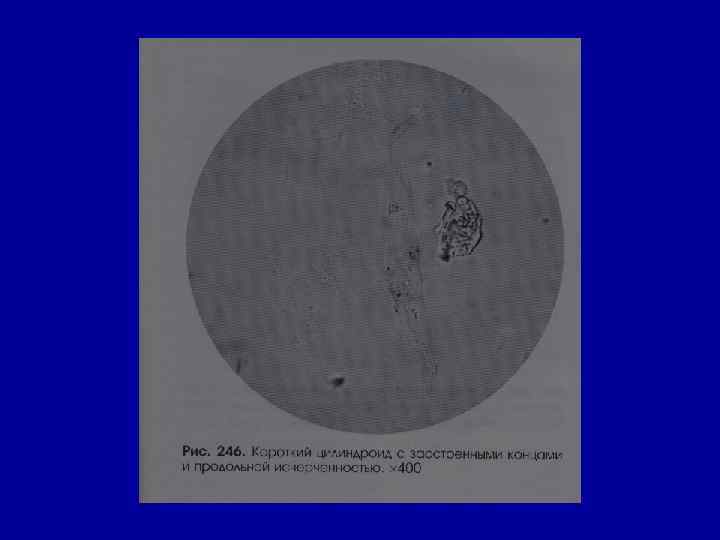 Микроскопическое исследование осадка Цилиндры Типы цилиндров Состав Причины Восковидные белок нефротический синдром различного генеза Эритроцитарные скопления эритроцитов - воспалительные заболевания почек - почечные паренхиматозные кровотечения Лейкоцитарные скопления лейкоцитов пиелонефриты Цилиндроиды нити слизи из (диагностического собирательных значения не имеют) трубочек - в конце воспалительного процесса