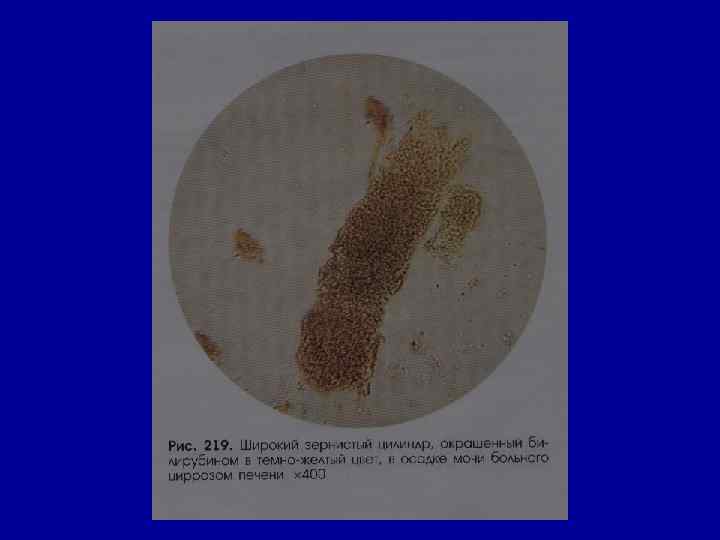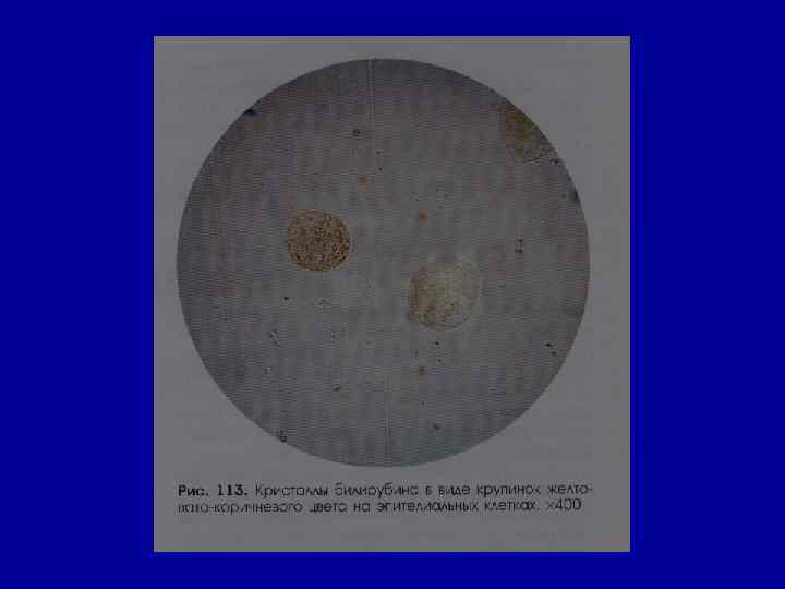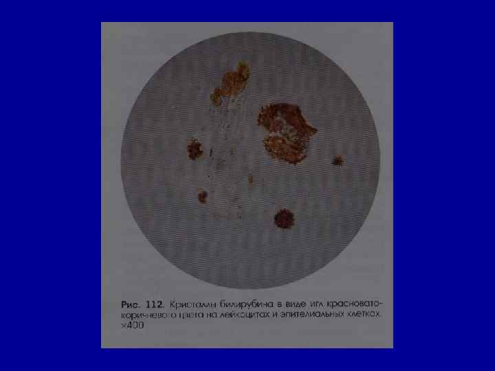 Билирубин • в норме – отсутствует • экспресс-метод для дифференциальной диагностики гемолитической желтухи (билирубинурия не характерна) от желтухи паренхиматозной (поражение паренхимы печени) и механической (нарушение оттока желчи)
