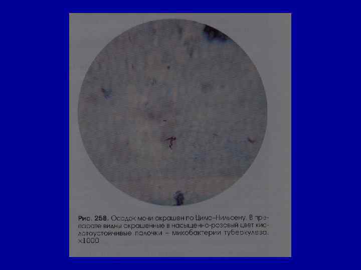 Бактериоскопическое исследование осадка мочи • исследование на микобактерии туберкулеза с окраской по Цилю. Нильсену • в норме - нет