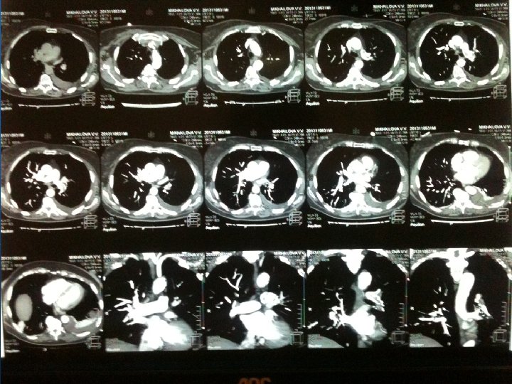 Проведен комплекс лабораторных и диагностических мероприятий n n n n общий анализ крови (Нв – 91 г/л) общий анализ мочи биохимический анализ крови + электролиты (Общий белок – 59 г/л) газовый состав крови ( Pa. CO 2 -30, 4, Pa. O 2 – 58, 3) Коагулограмма (МНО - 1, 18, АЧТВ – 25, 3, тромбоциты – 193*10/л) ЭКГ рентгенограмма органов грудной полости КТ-головы, груди