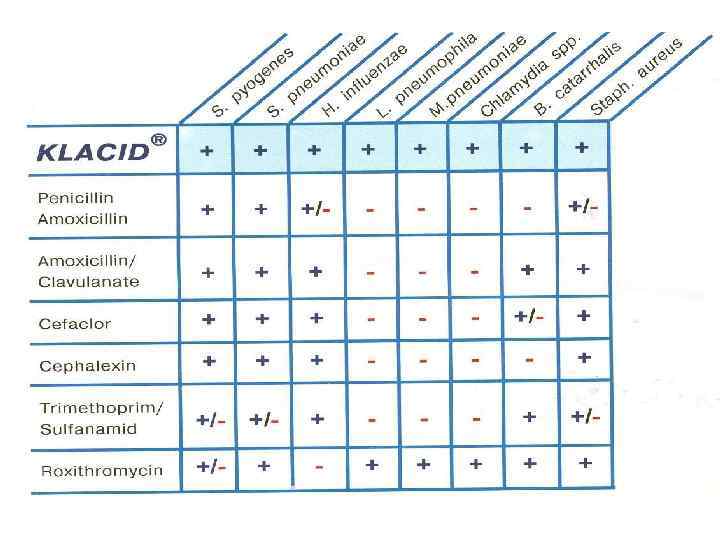 Оценка эффективности и безопасности • Если через 48 ч не происходит нормализации температуры тела, следует заменить первоначально применявшийся препарат на препарат II ряда или решить вопрос о госпитализации больного в стационар. • Продолжительность лечения (при клинической эффективности) 7 дней. • Оценка безопасности лечения складывается из учета факторов риска применения отдельных АБ средств и контроля за возможными нежелательными реакциями на них.