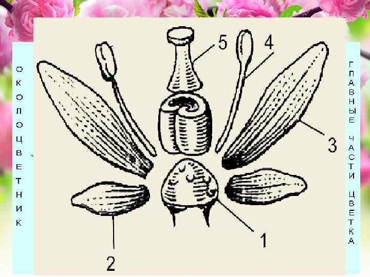 Строение цветка околоцветник тычинки пестик лепестки чашелистики цветоложе цветоножка Главные части цветка венчик чашечка