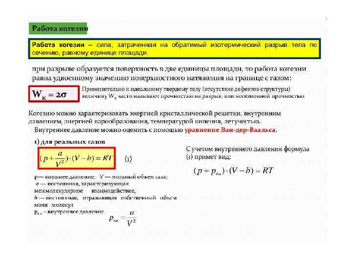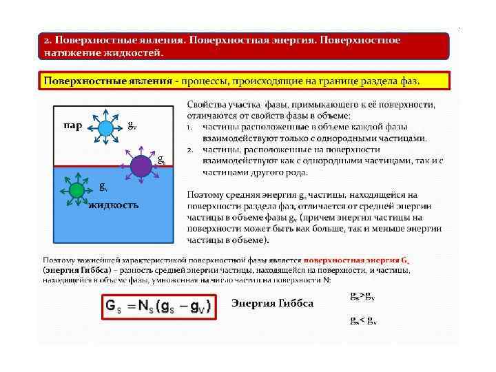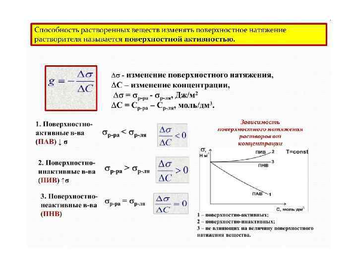 Поверхностное натяжение на границе жидкость – газ В условиях постоянства V, T, состава системы –δA = d. F: В условиях постоянства p, T, состава системы –δA = d. G: