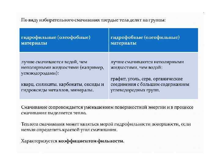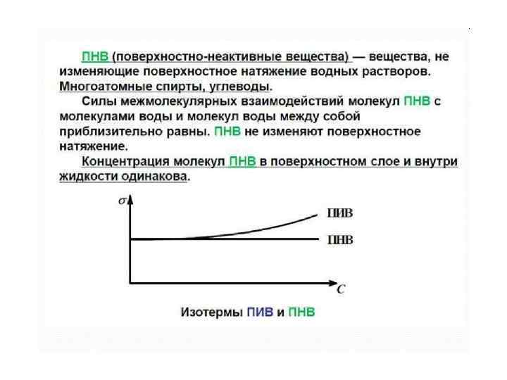 Зависимость поверхностного натяжения от природы соприкасающихся фаз. Поверхностное натяжение конденсированных фаз на границе с воздухом (или с насыщенным паром). σ, м. Дж/м 2 Жидкость Т, К σ, м. Дж/м 2 H 2 14, 7 2, 9 Hg 273 480 N 2 70 10, 5 Zn 750 753 NH 3 284 23, 0 Pt 2273 1820 Гексан 293 18, 4 Этанол 293 22, 4 Декан 293 23, 9 293 23, 7 Октан 293 21, 8 293 21, 3 Бензол 293 28, 9 Пропанол 1 Пропанол 2 Бутанол-1 293 25, 4 Нитробензо л H 2 O 293 43, 9 293 25, 8 293 72, 7 293 24, 0 Na. Cl 1096 114 Пентанол 1 Пентанол 2 Гексанол-1 293 26, 2