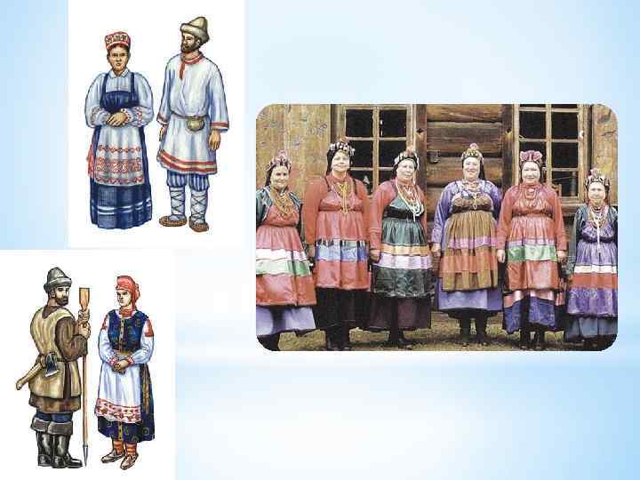 Национальный костюм Традиционный костюм отвечал укладу жизни карельского народа: одежда была свободной, удобной, шилась из доступных тканей (лён, пестрядь, посконь, шерсть и других).