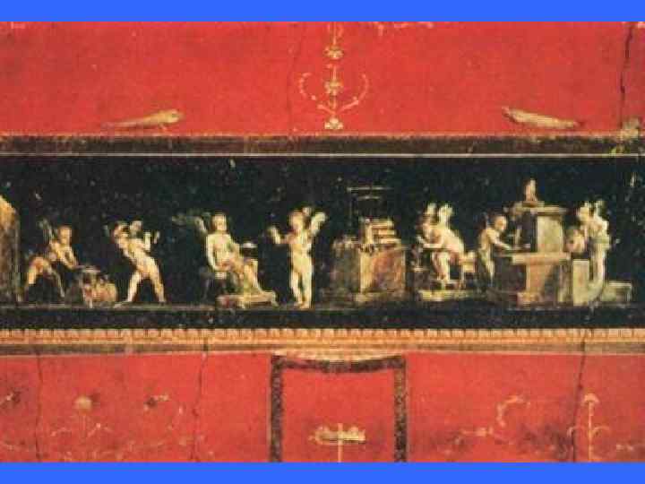 Полы в богатых домах украшались мозаикой — наборной живописью из естественных горных по род или цветных морских камешков —гальки, а также из цветной стеклян ной пасты (смальты). В до ме Фавна в Помпеях (на звание возникло от брон зовой фигурки фавна, найденной в доме) рас крыли мозаику площадью в 15 кв. м, изображавшую битву Александра Македонского с персидским ца рем Дарием. Прекрасно передано возбуждение битвы, даны портретные характеристики греческого полководца и воинов, изображены их одежды и оружие. Мастерству композиции соответствует красота колорита, построен ного на сочетании черного, белого, красного, желтого цветов.