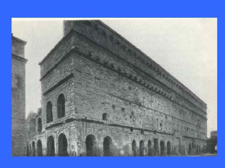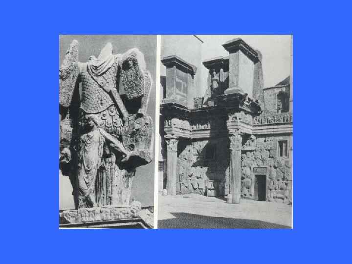 Искусство периода Октавиана Августа • Октавиану Августу приписывают слова, приводимые Светонием: «Я взял Рим глиняным, я оставляю его мраморным» . Прежде всего он расширил Форум, восстановил на нем некоторые здания (Базилику Юлия, например), построил так называемый театр Марцелла (14 г. до н. э. ). • «АВГУСТОВКИЙ КЛАССИЦИЗМ»