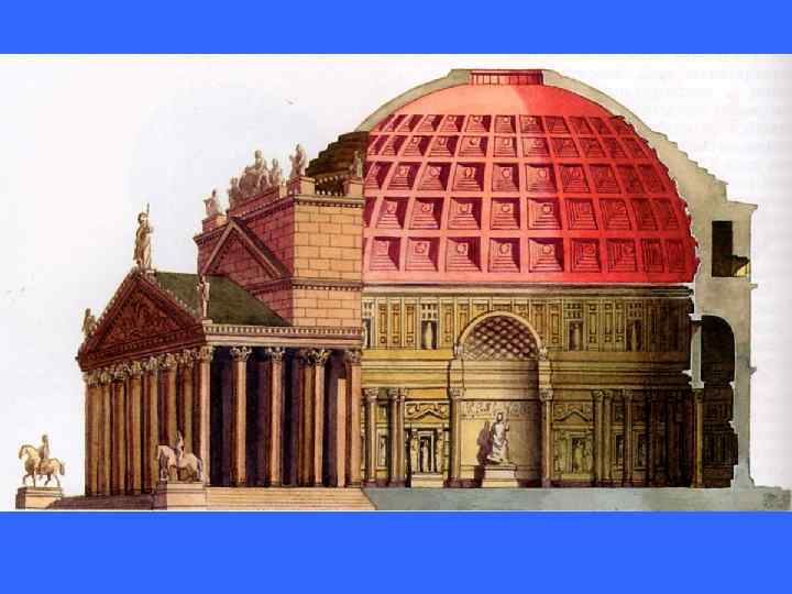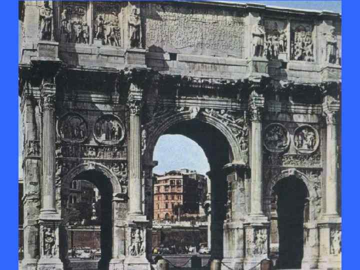 Искусство Римской империи • В конце I в. до н. э. Римское государство, раздираемое борьбой сословий, гражданскими войнами, сотрясаемое восстаниями рабов, приходит к военной диктатуре, превращается из Республики в Империю. Первым императором Рима был Октавиан, титулованный Августом, т. е. божественным (27 г. до н. э. — 14 г. н. э. ). Его прославляла римская литература, римская поэзия и, конечно, изо бразительное искусство. Беря за образец греческое искусство, стали изображать Октавиана и многих других императоров в бесчислен ных идеализированных статуях (так называемый августовский клас сицизм в период правления Октавиана). Полуобнаженная фигура напоминала греческих атлетов V в. до н. э. , но всему был придан внешний пафос, модель была явно героизирована. Иногда импера тор изображался в образе бога, чаще всего Юпитера • Римское зодчество в эпоху Империи достигло очень высокого технического и художественного совершенства и послужило образ цом для многих последующих веков. .