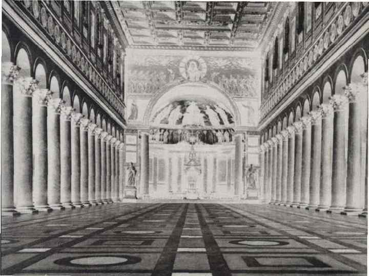 БАЗИЛИКА (от греч. basilike — царский дом) — прямоугольное в плане, как правило, вытянутое здание, разделенное продольными рядами опор (колонн, столбов) на несколько проходов — нефов, это позволяло надежно перекрывать большие пролеты; средний неф (как правило, выше и шире боковых) освещается через окна над боковыми частями