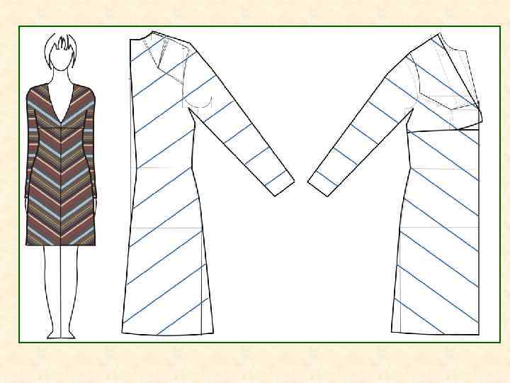 Иллюзии переоценки острого угла Иллюзия переоценки острого угла в одежде, изготовленной из материалов в полоску, возникает при расположении полос под углом. Зрительное заужение силуэта Зрительное расширение силуэта