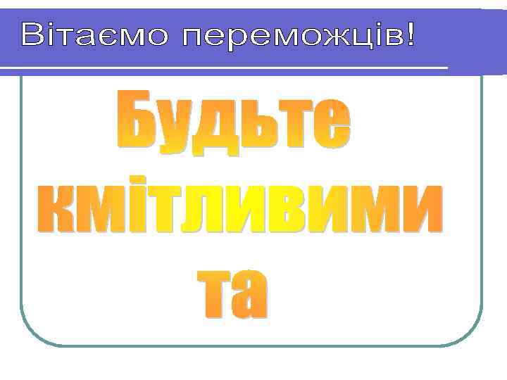 III ТУР. ГОЛОВОКРУТНІ l Капітан команди, яка швидше підготує відповідь, піднімає сигнальний круг. l Правильна відповідь оцінюється 3 балами. У разі неправильної відповіді право відповідати надається команді, капітан якої другим підняв сигнальний круг. За правильну відповідь у цьому випадку нараховується 2 бали.