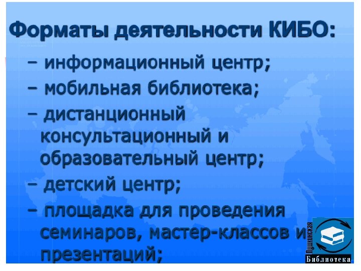 Бюджет мобильной библиотеки n n Стоимость нового библиобуса без книг около 208 тысяч евро. ( около 9 млн. рублей) Бюджет только комплектования 1 библиобуса около 34 тысяч евро (около 1, 4 миллиона рублей) Стоимость КИБО – 6, 5 миллионов в зависимости от комплектации Содержание в год от 500 тыс. до 1, 5 миллионов без учета комплектования