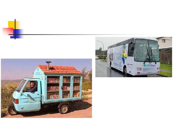 Мобильное обслуживание как способ сближения книги и читателя: n n n Что такое мобильная библиотека? Любая библиотечная служба, не стоящая на месте, относится к категории мобильных библиотек. Библиотечное обслуживание может предоставляться не только с помощью автомобилей, но и плавучих средств, поездов, самолетов, мотоциклов и всевозможных животных.