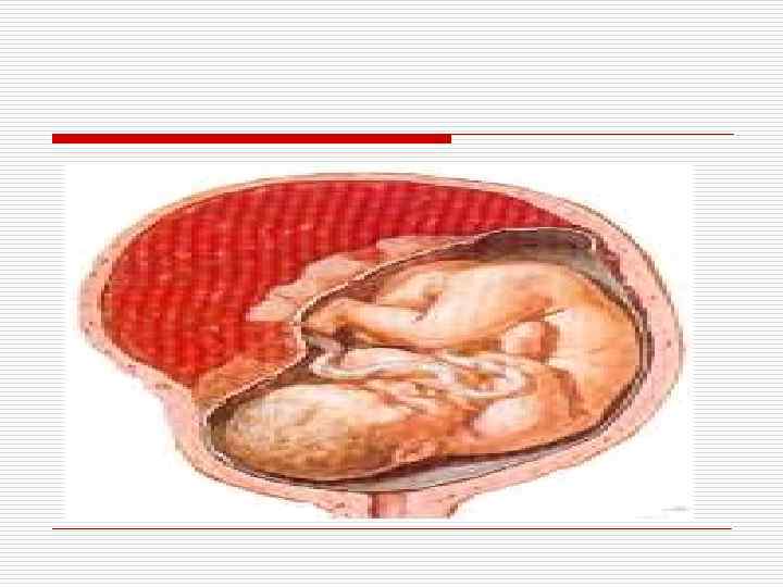 Нарушение системы матьплацента-плод, хромосомные нарушения у плода. Ø Ø Предлежание плаценты — патология плаценты, связанная с аномалией её расположения, при которой плацента частично или полностью перекрывает область внутреннего зева. К предрасполагающим факторам предлежания плаценты относят рубец на матке, осложнённый акушерско-гинекологический анамнез и миому матки. Преждевременная отслойка нормально расположенной плаценты — патология беременности, при которой происходит полная или частичная отслойка плаценты от стенок матки во время беременности или в I или. II периоде родов (т. е. до рождения плода). Предрасполагающие факторы преждевременной отслойки нормально расположенной плаценты перечислены ниже.