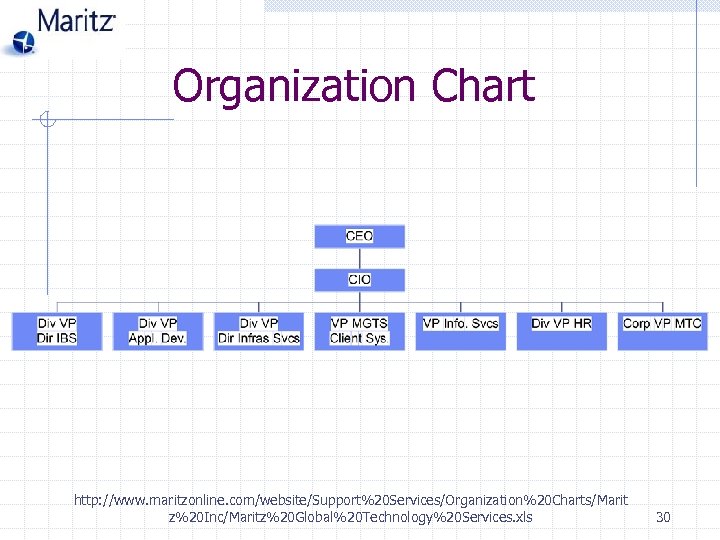 Organization Chart http: //www. maritzonline. com/website/Support%20 Services/Organization%20 Charts/Marit z%20 Inc/Maritz%20 Global%20 Technology%20 Services. xls 30