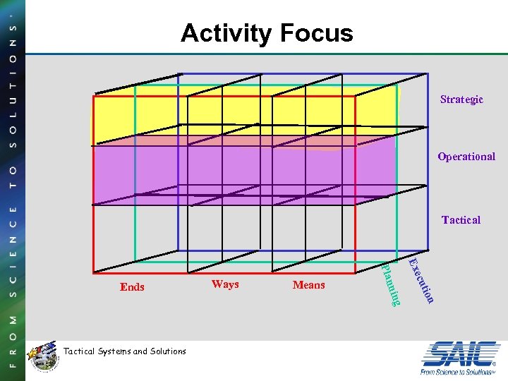 Activity Focus Strategic Operational Tactical ion cut Exe Means ning Tactical Systems and Solutions Ways Plan Ends