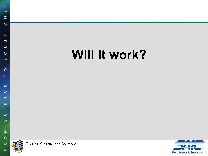 Will it work? Tactical Systems and Solutions