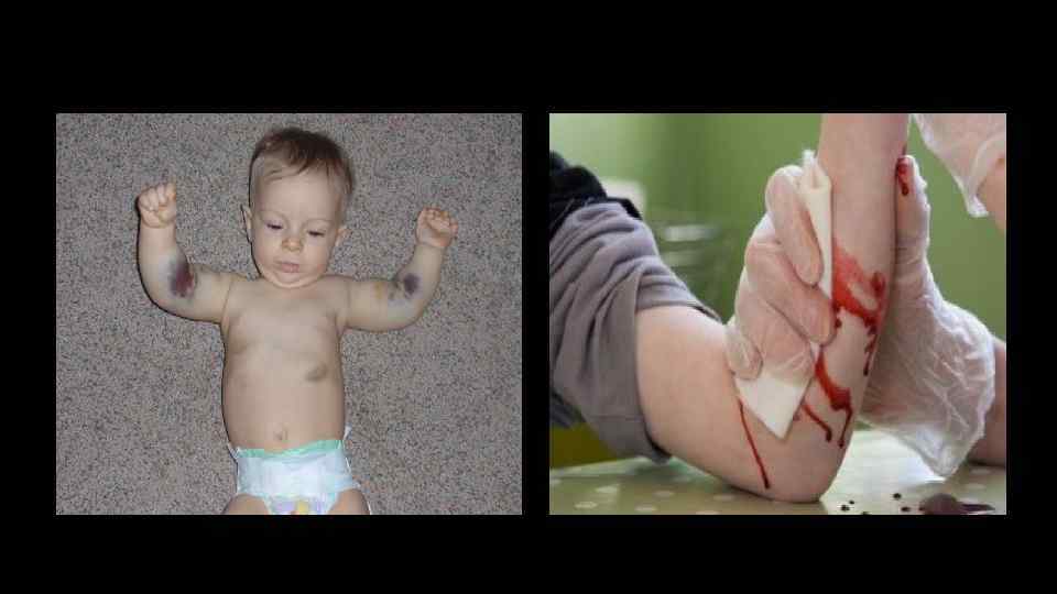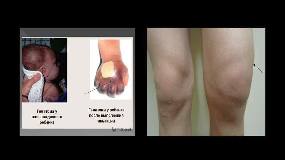 Наследственные коагулопатии Гемофилия А и В Клиника Кефалогематома Кровоизлияния в ягодицы при тазовом предлежании Кровотечение из пупочного остатка Кровотечение при прорезывании зубов Гематомы в местах ушибов и внутримышечных инъекций Гематурия Желудочно-кишечные кровотечения Кровоизлияния в мышцы и суставы Кровоизлияния в головной мозг