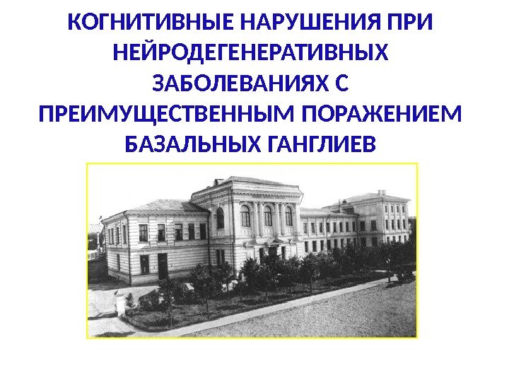 КОГНИТИВНЫЕ НАРУШЕНИЯ ПРИ НЕЙРОДЕГЕНЕРАТИВНЫХ ЗАБОЛЕВАНИЯХ С ПРЕИМУЩЕСТВЕННЫМ ПОРАЖЕНИЕМ БАЗАЛЬНЫХ ГАНГЛИЕВ