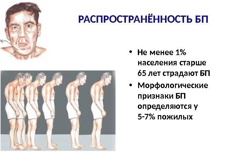 РАСПРОСТРАНЁННОСТЬ БП • Не менее 1% населения старше 65 лет страдают БП • Морфологические признаки БП определяются у 5 -7% пожилых