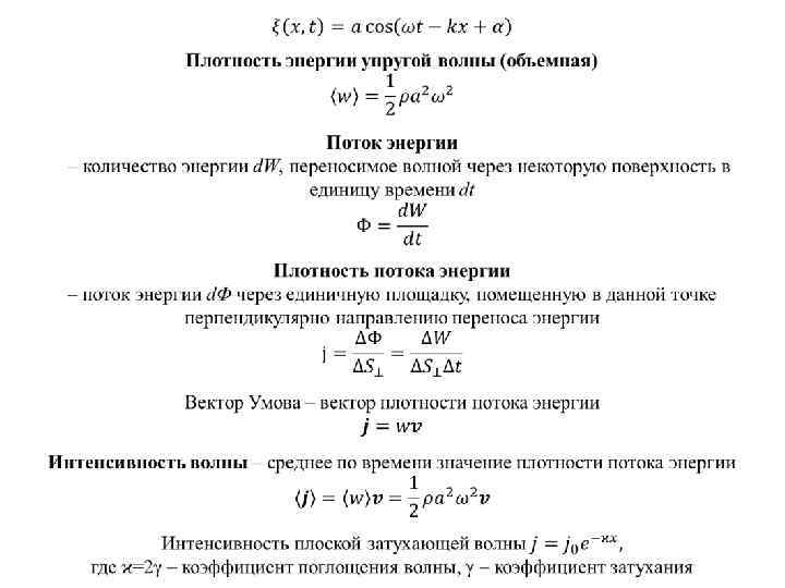 Размерности: 1. Объемная плотность энергии w: Дж/м 3 2. Плотность потока энергии j, S: В/м·А/м=ВА/м 2=Вт/м 2 3. Работа: Дж=Н·м 4. Мощность: Дж/с=ВА Световая волна Абсолютный показатель преломления n среды Длина волны в среде с показателем преломления n связана с длиной волны в вакууме соотношением