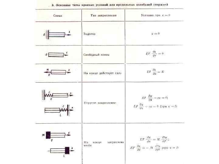 Основные типы краевых условий для продольных колебаний стержней 1. u=0