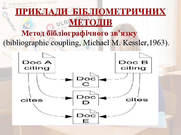 ПРИКЛАДИ БІБЛІОМЕТРИЧНИХ МЕТОДІВ Метод бібліографічного зв’язку (bibliographic coupling, Michael М. Kessler, 1963).