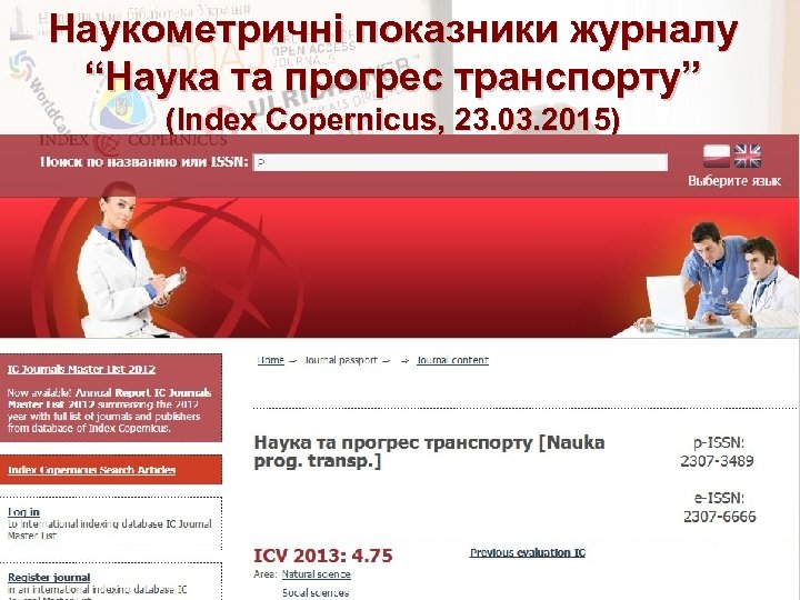 Наукометричні показники журналу “Наука та прогрес транспорту” (Index Copernicus, 23. 03. 2015)